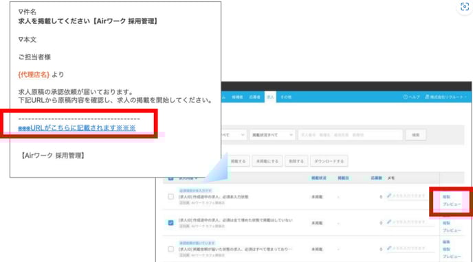 原稿作成完了後、Airワーク 採用管理より【求人原稿の承認依頼】メールが届きます。