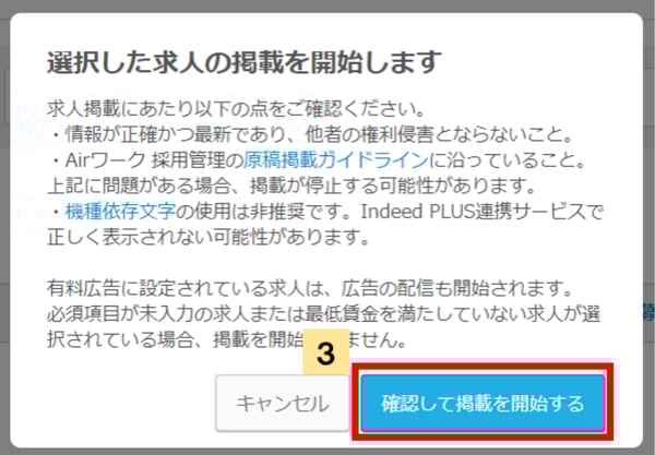 原稿内容にお間違いがなければ、掲載する求人にチェックをいれていただき、